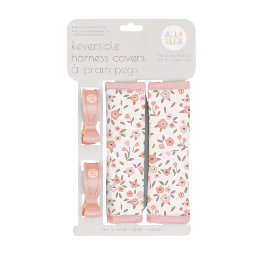 Enhance your baby's travel experience with All4Ella's Universal Harness Covers & Pram Pegs Sets.