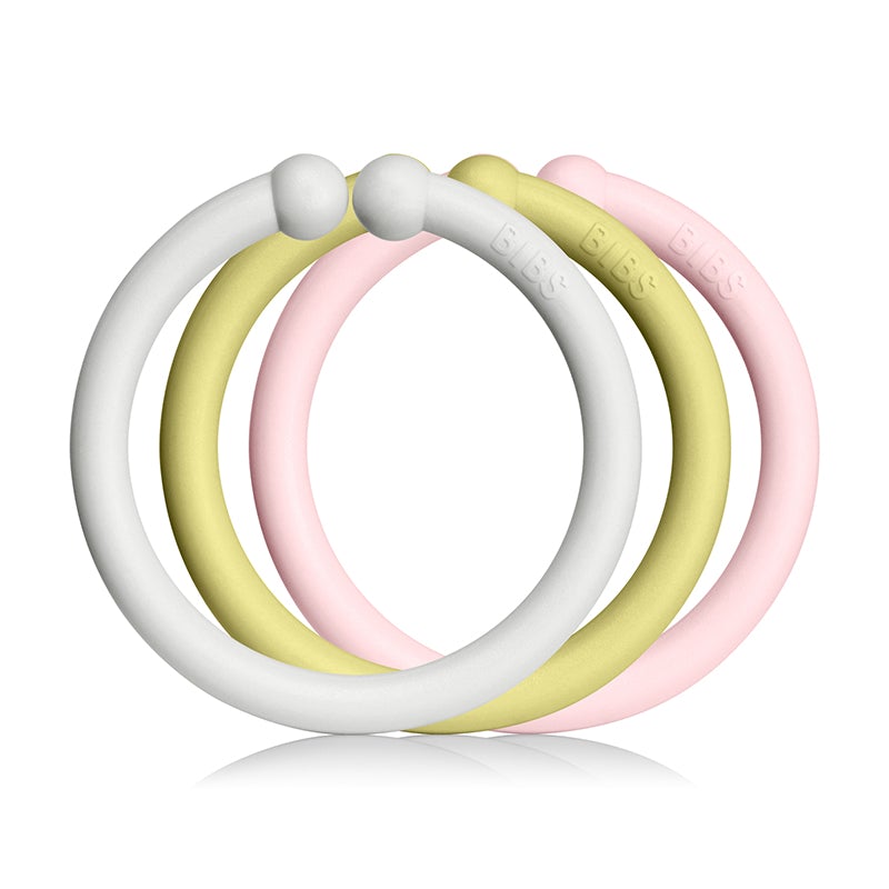 BIBS Loops are meant to be both practical and great fun for your child. They are perfect in the stroller or bed for hanging toys, for playing and even for babies developing teeth. Use BIBS Loops as a stroller chain, as a suspension in the car seat, over the changing table - only the imagination sets the limits. The BIBS Loops are designed as a multipurpose product to use both on the go and at home.