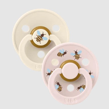 BIBS Colour pacifier is the original BIBS pacifier and has been on the market for over 40 years. It has the signature round BIBS shield with three vent holes and round BIBS engraved handle ring.