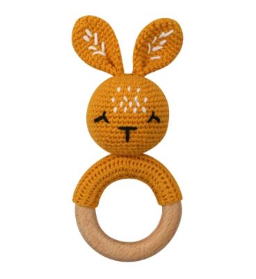 These sweet bunny rattles will keep your little love entertained. They measure approx. 16cm x 7cm and are available in a variety of colours.