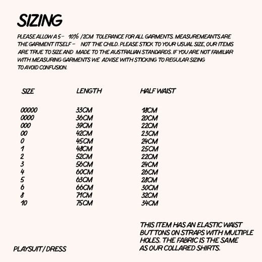 Sizes 000 to 1 are a playsuit & Sizes 2 years + are the dress.