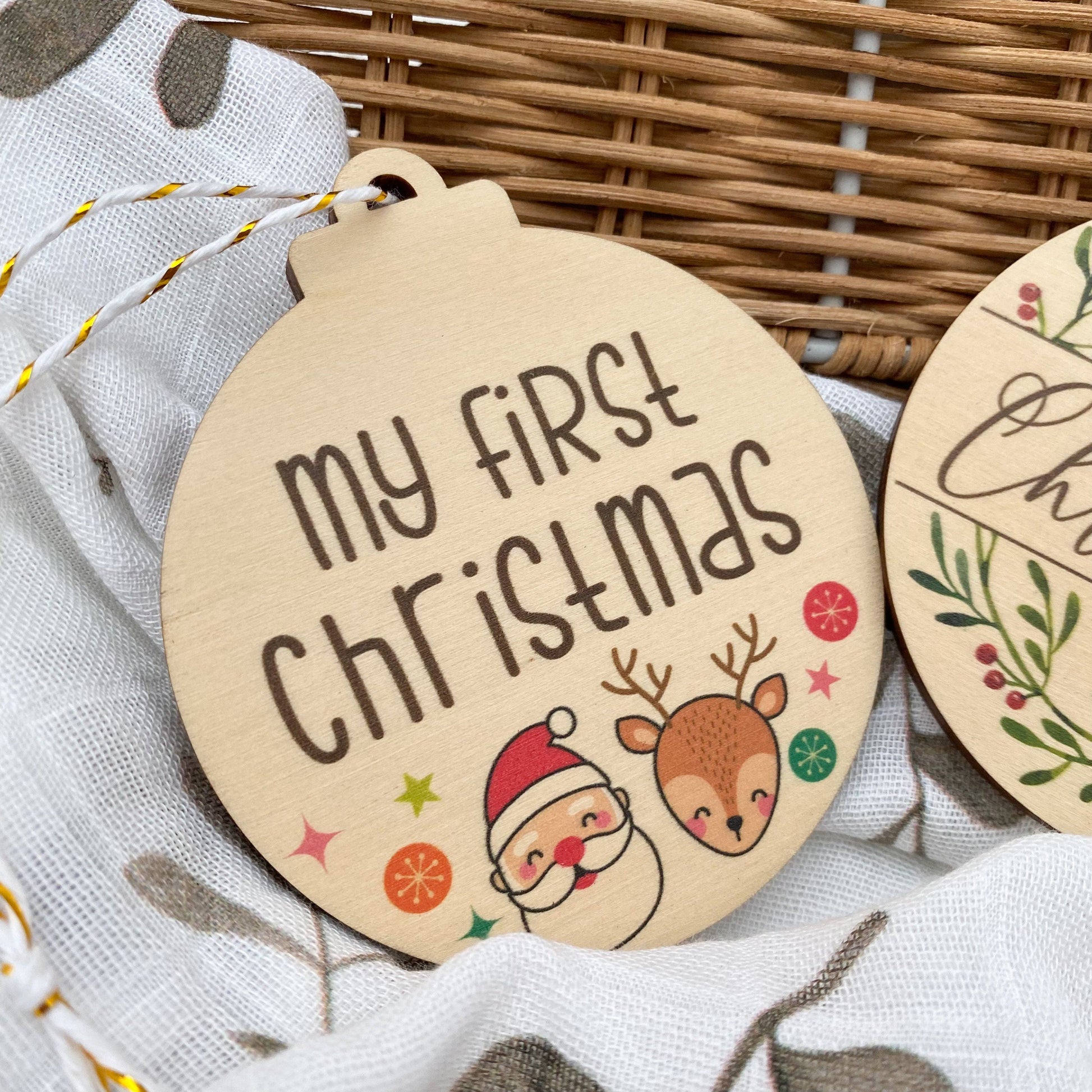 These beautiful "My First Chrristmas" baubles are the perfect way to celebrate this very special milestone. Hang on the tree or use as an extra special gift tag, they're a memorial keepsake to cherish.