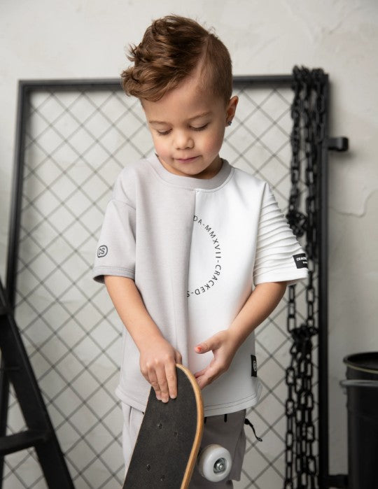 "Cracked Soda" - River Detail Sleeve Tee - Grey