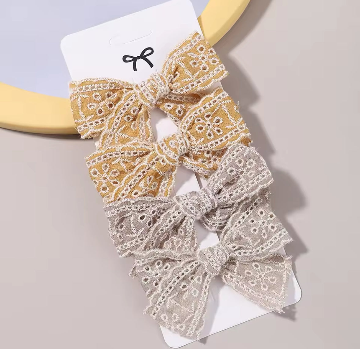 Keep your little one looking extra-cute with these lace look Bow Hairclips.