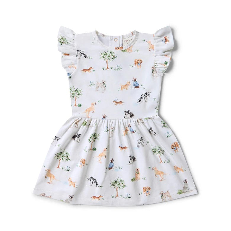 Soft and stretchy, our dresses are easy-care and very comfy for bub. The sizes up to and including size 1 come with a snap underbody to go over a nappy. Size 2 and up doesn't have the snap body feature. We have really focused on the details and ensured the dresses up to size 1 are short enough so that a baby can crawl and not trip over the skirt. Size 2 and over, when they're walking, is a bit longer.