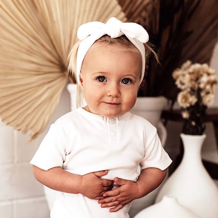 Topknot headbands are a simple and stylish way to modernise your baby’s outfit. On trend and fully adjustable, Snuggle Hunny Kids’ baby topknot headbands won’t squash your baby’s head or leave any marks. They are designed to be retied, so that the bow can grow with your baby through those first months when they are just so gorgeous.