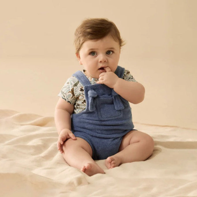 Keep your baby comfy and stylish in this Deep Blue baby overall, made from soft and absorbent GOTS-certified organic cotton terry towelling. Gentle on delicate skin and free from harmful chemicals, this baby overall features adjustable straps and a snap crotch opening for quick and easy changes. Perfect for everyday wear and warm-weather adventures.